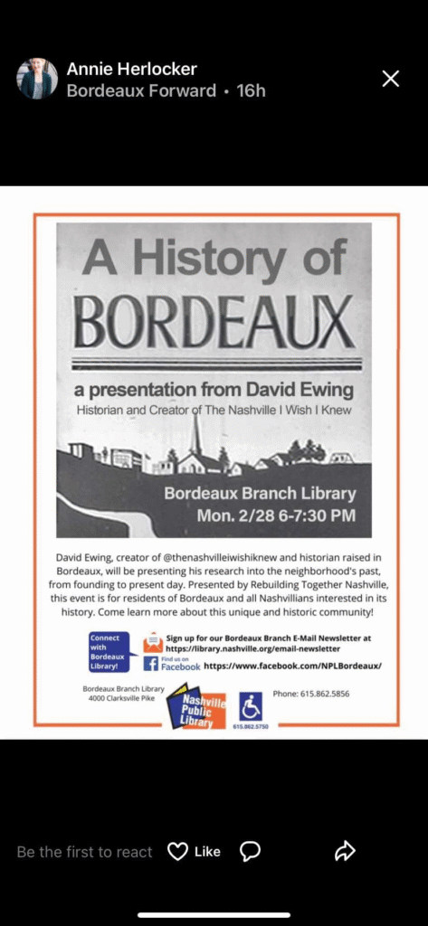 Catch some local historyBy Cato Neighbors / February 19, 2022 Cool opportunity to hear some history of the Bordeaux neighborhood. 2/28